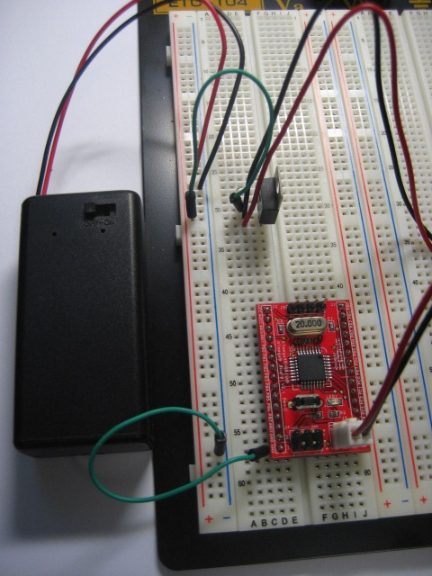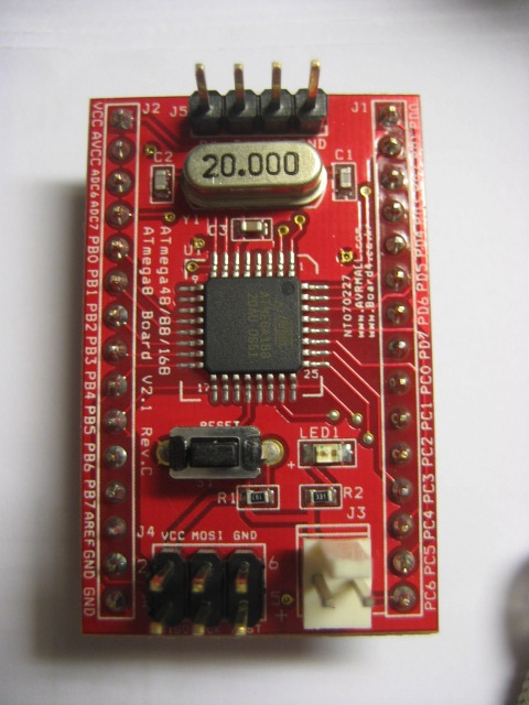 위와 같이 작업을 하고, 브레드보드에 Avrmall ATmega168 Board V2.1 를 아래의 그림처럼 설치했습니다.