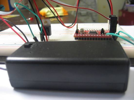 9V 건전지 스냅에서 전원을 연결하고 7805 레귤레이터를 통해 전원을 공급합니다.